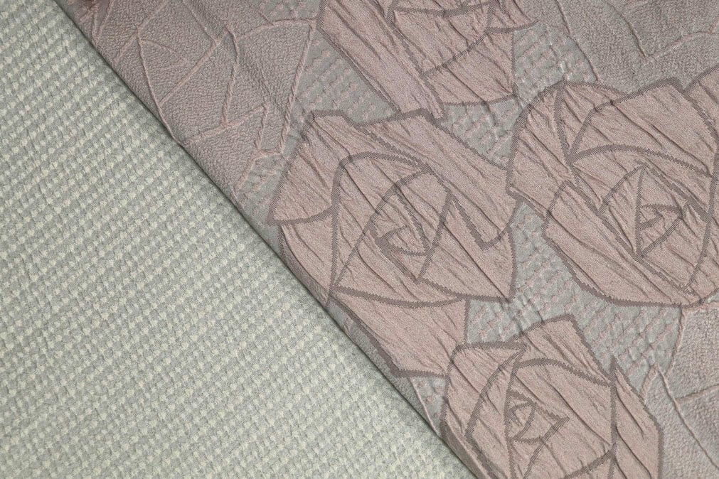希少価値の強撚糸を使いその伸縮性のおもしろみを活かした帯。